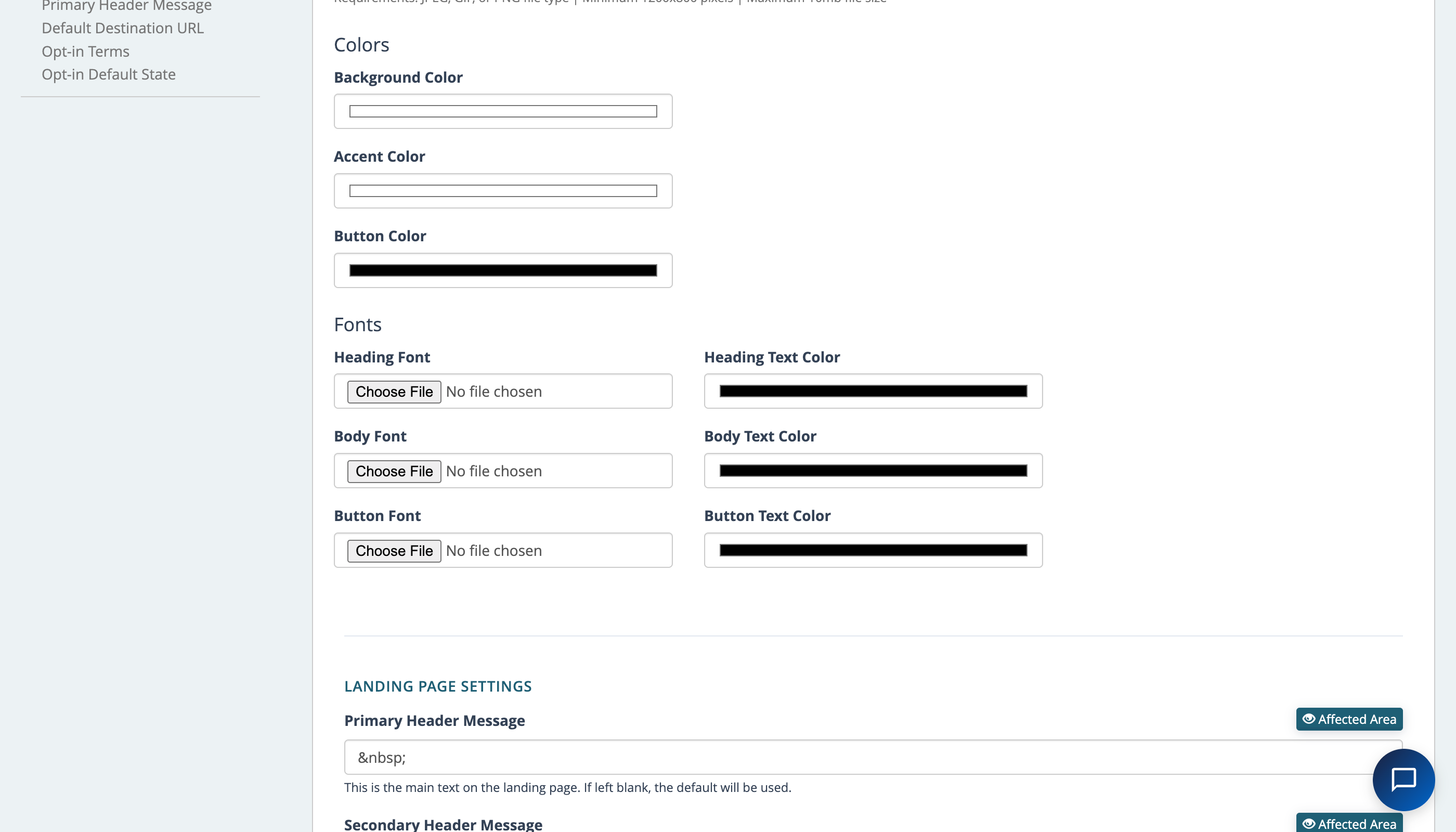 - In the left menu, confirm you’re on Branding Settings.