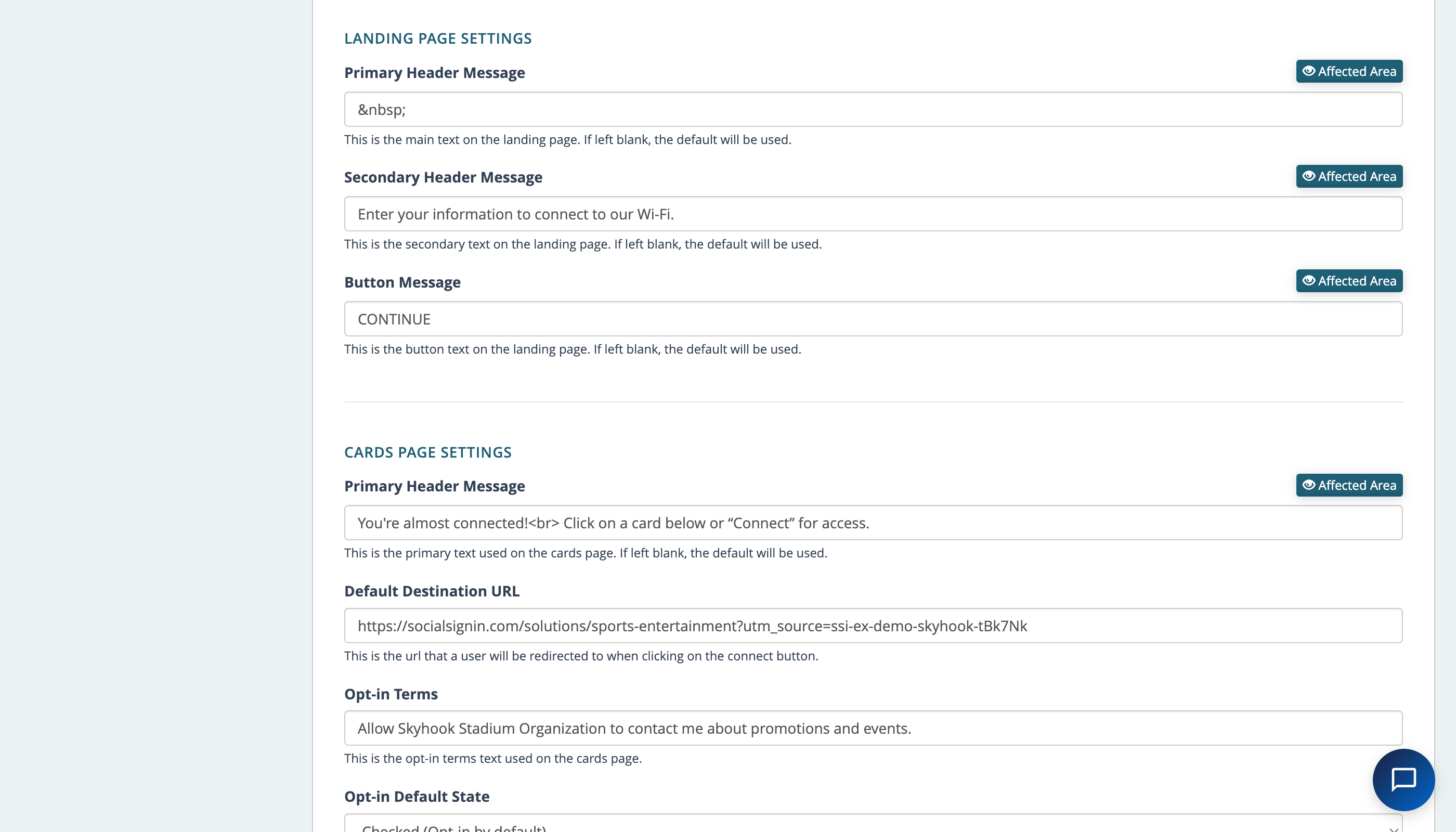 Enter the full URL (including https://) where users should be redirected after clicking the connect button on the Cards Page.