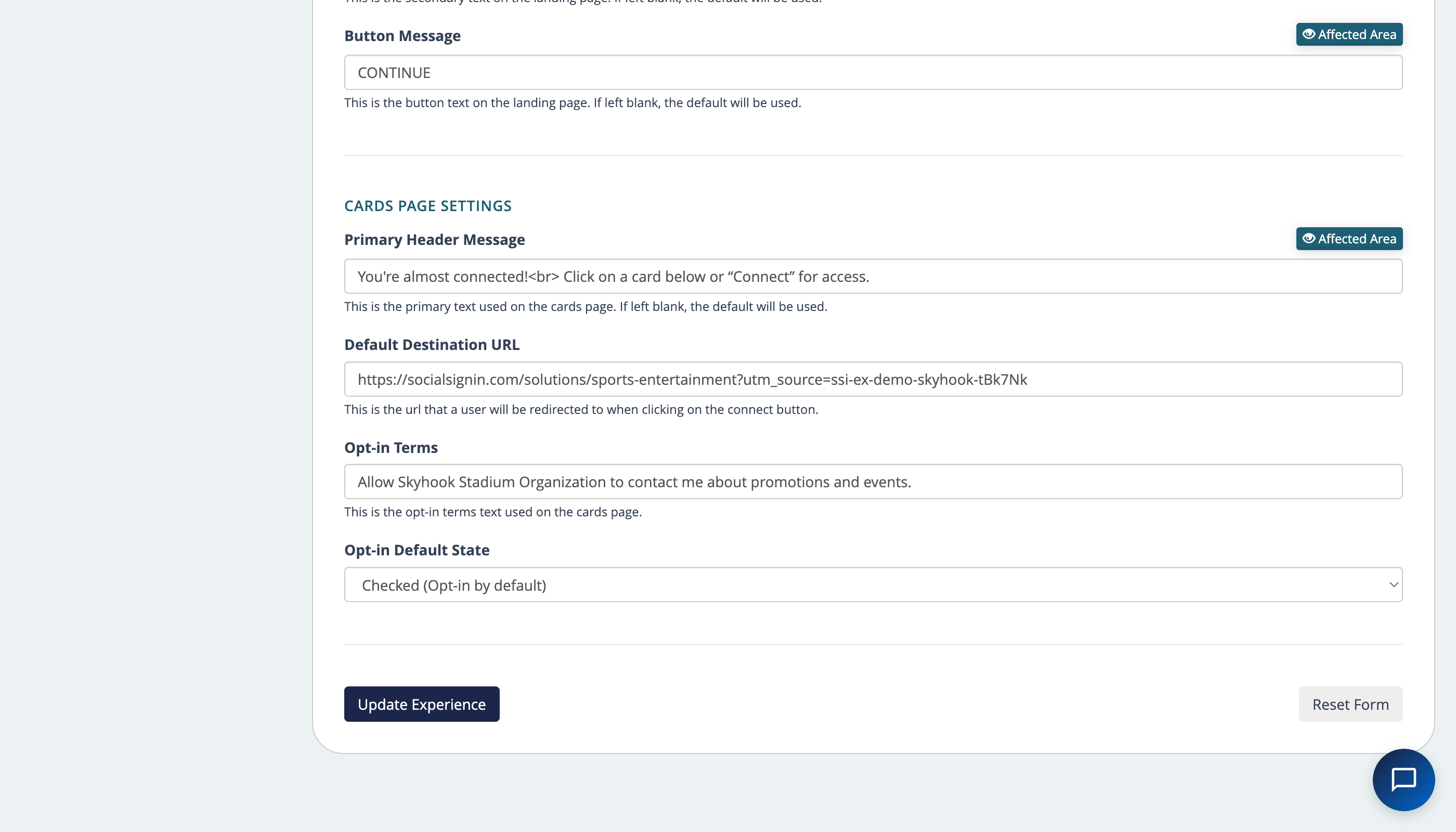 Click Update Experience.